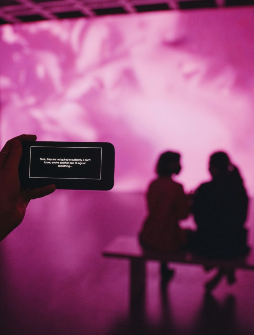 Visually impaired guests can experience installations in real time with synchronized audio descriptions, and transcripts allow curators and guests to investigate the texts of works. |